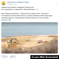 С конца марта на прибрежной территории между садовым товариществом «Лесовод-2» и пансионатом «Лазурь-С» на Северной стороне Севастополя начала активно работать строительная техника. Земляные работы производились с применением тяжелой техники в оползнеопасной и водоохранной зоне, глиняный склон был разрыт и разровнен, образовалась площадка размерами, приблизительно, 150 на 50 метров.