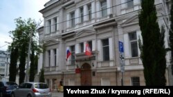 По диагонали через перекресток от «дома Волохова» на Суворова, 20 – еще одно приметное здание, в котором когда-то была женская казенная гимназия. Построена в 1890 году. Улица Суворова в 19 веке называлась Соборной. К сожалению, в начале 2000-х дом также подвергся варварской реконструкции и в нем был размещен Севастопольский городской суд. Тем не менее, сейчас российские власти разместили на здании табличку, что это объект культурного наследия регионального значения.