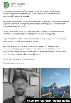 В сентябре появились похоронки на крымчан из Черноморского района. Это матросы Сергей Кузнецов и Андрей Ветров, о них Крым.Реалии сообщали ранее.