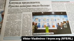 «Крымские известия» в статье «Клоунада продолжается. Просто актеров стало больше» пишет о прошедших выборах в парламент Украины. «Супруги Белоножко, толстяк Юра Корявченков по прозвищу Юзик, певица Анастасия Приходько, лидер группы «Океан Эльзы» Славко Вакарчук, красавчик-шоумен Сережа Притула… Это не список участников концерта, а персонажи, стремящиеся усесться в депутатское кресло, а потому баллотирующиеся в Верховную Раду Украину», ‒ отмечает издание.