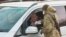 Украинские пограничники в перчатках и марлевых повязках измеряют температуру тела всем, кто приезжает из ЕС через границу Украины и Венгрии.